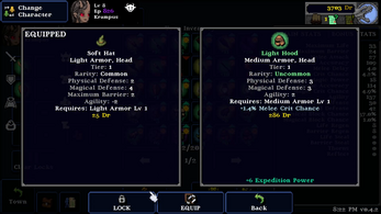 Despite how much I enjoy it, there are a couple of things that would really elevate the experience. My biggest frustration is trying to sort through armor. The little pictures for Light, Medium, and Heavy armor all look too similar! I spend too much time guessing which piece is which, which slows down inventory management. It would be a huge help to have an option for clearer, bolder icons or just little text labels (like L, M, H) right on the item to solve this confusion instantly. Building on this, it would be amazing to have a quick filter for new characters based on general archetypes. For instance, if I’m rolling a new magic-user, a "Mage Build Quick Filter" could automatically highlight gear with generic magic-user stats and staff-friendly armor types. I know the fun is in mixing and matching later, but this feature would save a ton of time getting a new character started and leveled up to the higher tiers.